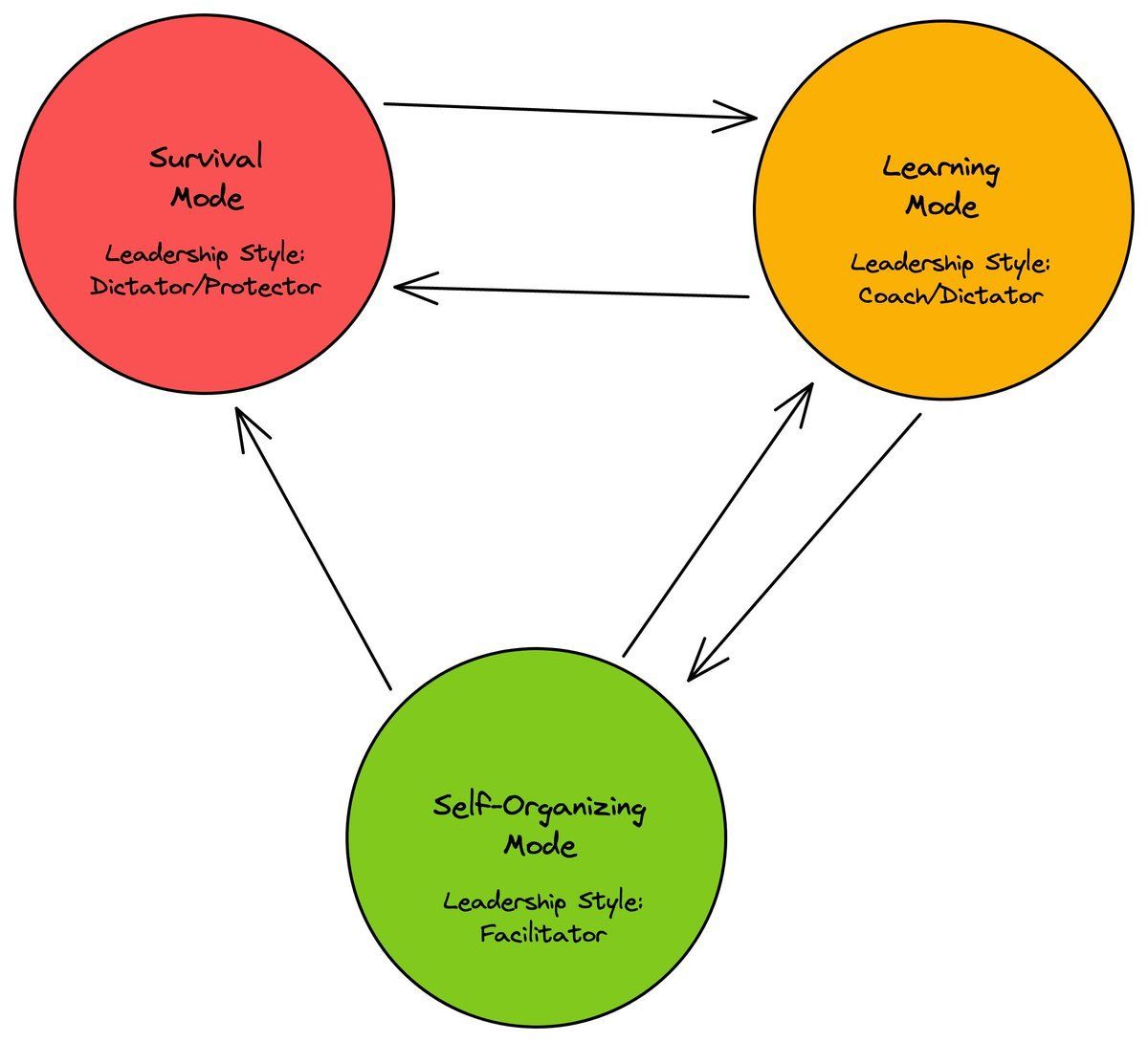 @hsdmiranda No, I think the Elastic Leadership model is more realistic. Where you move between modes which only one limitation, you cannot move from Survival Mode to Self-Organizing Mode without passing by Learning Mode